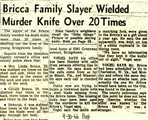 Several factors indicated the assassin knew the victims. There was no forced entry, a carving knife matching the wounds was missing, and the house was ransacked yet nothing taken. There were no defensive wounds or signs of a struggle. The Briccas’ two dogs, known to be aggressive, were found locked in the basement. Investigators theorized that 4-year-old Debbie was murdered because she could identify her parent’s killer…or killers.
